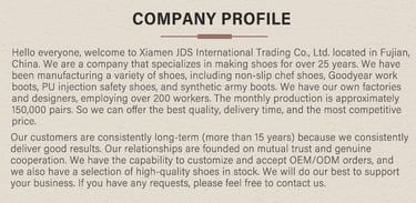 Offering tailored solutions for high-quality shoes with a focus on safety, durability, and comfort.